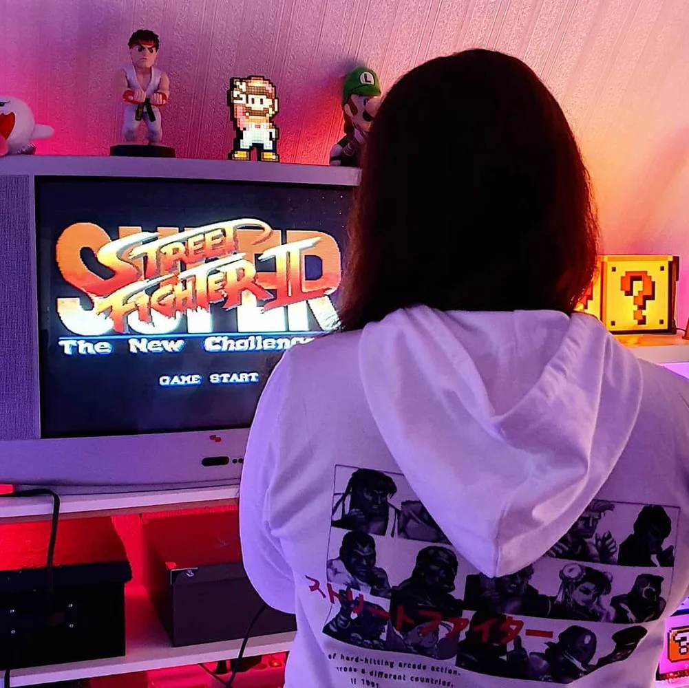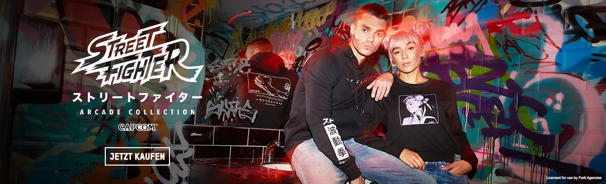 Münze einwerfen. 1P drücken, um zu starten. Spieler auswählen. Kämpfen! Du gewinnst mit unserer Street Fighter-Kollektion, welche für virtuelle Kämpfer konzipiert ist, die Tag und Nacht in Arcade-Clubs unterwegs sind.