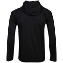 - Large hood with drawstring ties