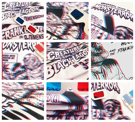 Die gruseligsten Monster der Leinwand, wie du sie noch nie zuvor gesehen hast! Die Serie Monsterrors 3-D aus den Monster-Serien der Universal Studios enthält einige unglaubliche Designs aus dem letzten Jahrhundert. Im Licht des Vollmonds sucht der Wolfsmensch Rache. Ziehe deine Retro-3D-Brille auf und du wirst deinen Augen nicht trauen, wenn das Monster zum Leben erwacht! Zum ersten Mal wirst du feststellen, dass alles in der Monster-Serie voll funktionsfähige 3D-Effekte bietet. Die T-Shirts sind limitiert auf je nur 200 Stück, also top Sammlerstücke! Bringe jetzt dein Lieblingsmonster in 3D zum Leben!