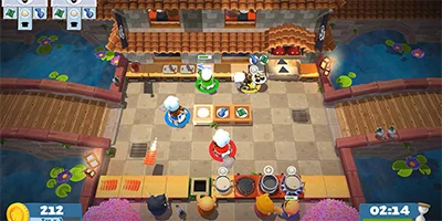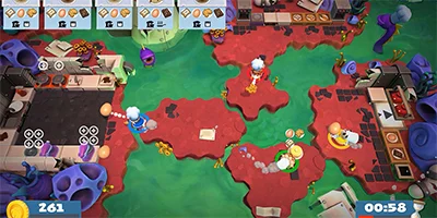 - Romaine Calm: Travel through teleporters, across moving platforms and save time by throwing ingredients across dynamic kitchens that shift and evolve.