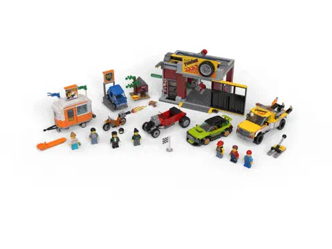 In der Tuning-Werkstatt von Tread Octane ist alles möglich! Der verrückte Bastler Harl Hubbs arbeitet an seinem raketenbetriebenen Motorrad, Tread schweißt an seinem preisgekrönten Hotrod und der Mechaniker ist mit einem liegengebliebenen Sportwagen im Abschleppwagen angekommen. In der Zwischenzeit ist der ehrlichste Autohändler der Stadt in seinem Camping-Anhänger und bereitet ein weiteres seiner Sonderangebote vor! Mach mit bei dem Spaß mit diesem coolen LEGO® City Set!