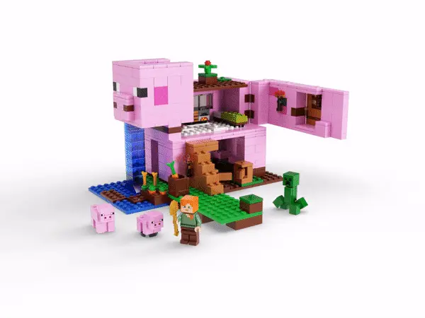 Nutze deine Minecraft™-Fähigkeiten, um ein Haus in Form eines riesigen Schweins zu bauen! Es gibt eine Seite, die sich öffnet, um einen großen Raum zu enthüllen, und ein abhebbares Dach, das einen kleineren Raum im Kopf des Schweins freilegt. Erkunden Sie das Innere mit Alex - aber passen Sie auf den Creeper™ auf. Lust auf ein Redesign? Bewegen Sie den Kopfraum woanders hin. Sie möchten ein komplettes Redesign? Verwenden Sie die Explosionsfunktion, um Ihr Modell in Stücke zu sprengen!