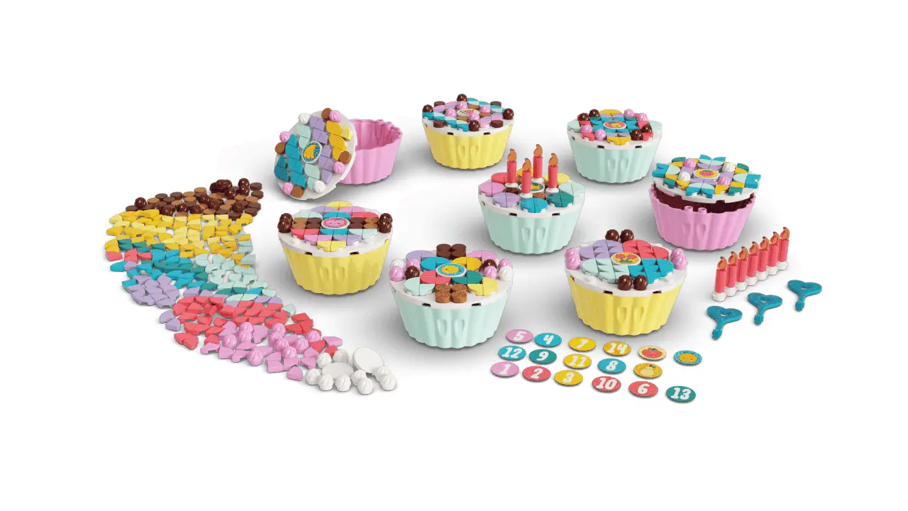 • Es ist eine LEGO DOTS Party! Jedes der lecker aussehenden Cupcake-Spielzeuge hat einen abnehmbaren Deckel aus Zuckerguss und ein verstecktes Fach im Inneren, um Geheimnisse zu bewahren