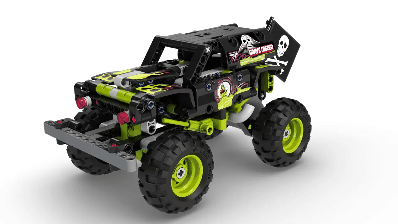 Suchen Sie nach einem lustigen Spielzeug oder Geschenk für 7 Jahre alte Jungen und Mädchen, die Monster Jam Trucks lieben? Das LEGO Technic Monster Jam Grave Digger (42118) 2-in-1-Bauset ist vollgepackt mit Funktionen, die Kinder lieben werden. Zu den authentischen Details gehören Grave Digger-Grafiken mit Geister- und Feuerdetails sowie riesige Reifen, eine bewegliche Flagge und rote Scheinwerfer. Erleben Sie, wie die aufregende Welt von Monster Jam zum Leben erweckt wird, während die Kinder die epischen Stunts eines der berühmtesten und kultigsten Monstertrucks aller Zeiten nachspielen.